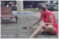 Вдоль всего побережья, в нашем районе, сразу за первой линией отеля проходит железная дорога! То есть с одной стороны нашего отеля - океан, а сзади, сразу за воротами - железная дорога. Я когда это впервые увидела и услышала поезд, зайдя в номер, просто обалдела. НО! Пусть вас это не пугает) Как человек, страдающий мигренями и прочими головными болями ответственно заявляю - страшно только первый раз, потом, даже при мигренях, уже не замечаешь. Тем более днем мы почти всегда были на пляже, где поезда не слышно, а потом, в номере его хоть и слышно, но не настолько, чтоб он перекрывал ваши голоса. То есть ни спать, ни болтать, ни смотреть телевизор звуки поездов не мешают, поверьте на слово. Ночью поезда не ходят, кстати.