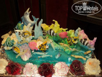 Проблем чем накормить ребенка не было,есть детское меню и диетический стол ,но наш кушал то что и все особенно различные торты и пирожные ассортимент просто огромный,фрукты каждый день разные, никаких отравлений или расстройств желудка не было.От Аквапарка для детей наше чадо было в полном восторге! уходили со слезами на глазах,но вода прохладнее чем в море.Само море очень соленое и теплое, вода прозрачная даже возле берега проплывали мурены,и различные рыбки.