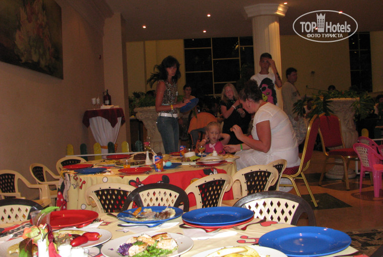 - Питание в целом хорошее,мясо хорошо прожарено,выбрать есть из чего,сформировались свои предпочтения.Есть отдельно огороженное помещение в ресторане с детскими столиками,стульчиками и стульями для взрослых.Привычная еда есть и макароны и картофель (в т.ч.фри) и курица,пицца вкусная,кукурузные хлопья,шарики типа Нестле на завтрак).Дети голодными не остануться) Фрукты,дыни,гранаты(очищенные),финики,мороженное (на пляже тоже с 12-16 часов) Автоматы с кофе,капучино,шоколадом, фантой,спрайтом..Мини бар в номере бесплатно ,каждый день обновлялся.Вкусный сок 2 пакетика в сутки (из Манго и Гуавы),я зря везла из дома)))Вода в номере 2 литра/сутки на 3-их вполне хватает.