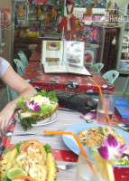 По дороге на пляж есть кафешка. Где очень вкусно и недорого кормят. Там как бы стоят вплотную друг к другу пять кафешек. Мы ходили всегда во вторую слева, если идти от отеля к морю. Там официантка женщина тайка и ее муж. Любая пицца стоит 100 руб., сэндвич большой с картошкой фри 80-120 руб. Тайская кухня от 80 до 150 руб. Например, 8 кревоток с листьями салата - 80 руб. Рис с креветками с овощами в анасе - 80 руб. Пиво, если не ошибаюсь, от 80 руб. Только говорите им ноу спайси!! если не любите остроту. Потому тайская кухня острая. Нам всегда в этом кафешке давали в конце бесплатно фрукты целую тарелку :). Поэтому мы всегда туда ходили.