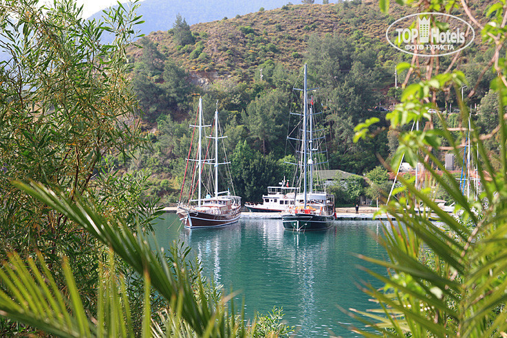 Отдыхали в этом отеле с 30.04.2011 по 8.05.2011. Приготовтесь долго ехать из аэропорта города Даламан до отеля и высаживать по дороге всех туристов в свои отели. Мы добирались до отеля около 2 часов - это несколько утомительно. Отель находится совсем на отшибе, далеко от Фетхие и занимает целый небольшой полуостров. Это практически посёлок со своей инфраструктурой. Территория отеля очень красиво озеленена – всё вокруг в цветах, клумбах и засажено соснами. Транспортного потока мимо отеля нет, до Фетхие прямо с территории отеля каждый час отходит катер стоимость билета 5 евро на человека. Большинство отдыхающих в отеле – англичане, немцев практически нет, немного русских. Браслеты в отеле не предусмотрены. Территория отеля гористо-холмистая, постоянно приходится то подниматься, то спускаться по лестницам. До некоторых бунгал поднимается фуникулер (кабинка на рельсах).