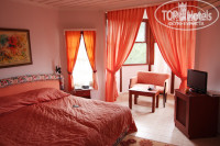 Отель представляет собой множество бунгал на четыре-пять номеров и главный пятиэтажный корпус. Вид практически изо всех бунгал открывается на море, в главном корпусе точно есть номера без вида на море, да и ещё рядом с шумным детским бассейном. Нас поселили в корпус Z (см.карту). Как мы поняли в эту сторону селят всех русских. В принципе не скажу, что плохое место. В номере есть электрический чайник, чай-кофе, сахар, сливки бесплатные. Каждый день в номер с уборкой приносят две бесплатные бутылки воды. Так же есть холодильник, ассортимент мини-бара был бесплатный. В ванной два белых халата и две пары белых тапочек. Телевизор плоский ЖК, показывает несколько русскоязычных каналов, пульты от ТВ и кондиционера полностью в рабочем состоянии. В шкафу есть сейф. В нашем номере не было балкона, хотя в разных домиках по разному, где-то они большие, где совсем маленькая площадочка. Вместо балкона был такой альков с окнами полукругом и диванчиком в нем. Окна во всех домиках и центральном корпусе деревянные и открываются по принципу английской рамы – то есть окно разделено горизонтально на две рамы, берешь нижнюю поднимаешь вверх, вынимаешь специальные опорки и устанавливаешь их под раму. Держится вроде бы крепко, но страшно, что всё это жахнет на голову :о) Убирались каждый день качественно, даже крутили какие-то финтифлюшки из цветов и полотенец. Пару раз в номере были замечены муравьи и какие-то сороконожки. Вообще надо сказать, что в начале сезона номера в бунгало еще не прогреты солнцем, я бы даже сказала сырые. Постоянно приходилось включать кондиционер на обогрев, но это издержки несезона.