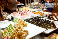 Питание в отеле по системе UAL – наливают и кормят круглосуточно :) Основные приемы пищи очень разнообразны – помимо стандартных блюд из курицы и рыбы бывали печёнка, почки, баранина, форель речная, мозги. На завтрак все стандартно – омлет, яичница, оладьи, хлопья, картофель, овощи ну и очень много всяких закусок и наполнителей к блинчикам. Фруктов было достаточно, почти каждый день была клубника вполне достойного качества. Десертов – целый стол в три метра. Вино в свободном доступе, можно наливать самим, пиво и крепкий алкоголь наливает бармен. Персонал вышколен, грязную посуду убирают и накрывают на стол очень быстро и с улыбкой. Если что-то из еды заканчивается, то всё пополняется быстро. Помимо основного ресторана есть бар «Дельфин», где можно перекусывать между завтраком и обедом, ресторан «Марина» - как второй ресторан возле главного корпуса, есть еще ресторан в конце полуострова, но поскольку было начало сезона, то он не работал. Алкогольные напитки не зажимают, не делают вид как будто не слышат (как бывает в некоторых отелях), обслуживают быстро и вежливо. Рестораны А-ля карт не работали вообще, видимо считалось, что еще несезон и мало народу.