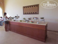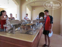 Дальше "ресторан" (столовка и не больше) если честно есть нечего. Мясом у них называется нечто с прожилками и хрящиками, и то через раз. Рыба правда ничего, но на любителя. Из фруктов была гуава, 1 раз арбуз видела у кого-то в руках, но не успела- все расхватали, были еще финики И ВСЕ!!!! Один раз был шашлык из курицы около бассейна - пришлось выстаить огромную очередь - иначе не досталось бы. Да. кстати, во время еды нет сока или элементарной воды. Чай - пакетики Lipton в 3х-литровой банке, а кипятка постоянно не хватало. Посуда грязная, попадались жирные тарелки, про стаканы вообще говорить нечего. С солфетками и столовыми приборами напряженка - приходилось самим розыскивать. Со столов официанты имели привычку не вытирать. Очень неудобное время трапезы: завтрак 7.00-10.00, обед 13.00-15.00, а ужин вообще только 19.00-21.00. За время от обеда до ужина перекусить нечего и негде (если только местное МЕТРО или кафе неподалеку).