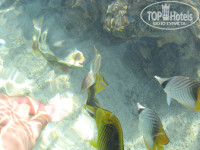 Маленький, скромный, тихий отель на второй линии. Мы были там с 24.10-04.11.09.09г. с мужем. Нам дали сразу, без всяких доплат, отличный номер с видом на бассейн и даже было видно море вдали. До моря недалеко, мы часто ходили сами, хотя можно было воспользоваться автобусом, который бесплатно возил всех желающих. Пляж общий на несколько отелей, но мест всем хватало. На пляже всегда стояли огромные колонки и ставили современную музыку, часто очень соответствующую настроению и шуму волн :-), было здорово!!!! Наш пляж, хоть и маленький, отличался настроением, в отличии от соседних. Вода кристально чистая, можно было заходить в воду сразу с берега, правда мелковато, метров 100 идет мель, потом начинается коралл, возле которого можно было увидеть множество разнообразных рыб, всяких форм и расцветок :-) Мы кормили их каждый день очищенными яйцами. Каждое утро они нас ждали и с удовольствием устраивали целое представление, кружась вокруг нас, что доставляло массу удовольствия!!!!!!!!!! Мы даже видео засняли, это просто незабываемое зрелище!!!! Вода настолько чистая, что рыбы словно под стеклом :-) СУПЕР!!!!! В воду также можно было войти с пантона, на соседнем пляже, но мы туда не часто ходили. Места скопления рыб и коралл, отмечены флажками, легко найти. Обязательно приобретите маску и тапочки, без обуви не желательно заходить в воду, т.к. можно наступить на что то не очень приятное.