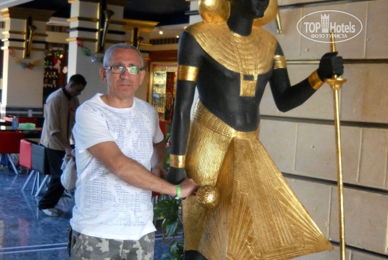 Отдыхали в Кинг Тут с 30 декабря по 8 января. Прилетели поздно вечером, до отеля ехали минут 20. Размещение в течение 10 минут. Ничего никому не платили, да никто и не намекал. Уставшие с дороги хотели быстрей попасть в номер. Номер обычный(412, на 4 этаже), то есть с 2-хспальной кроватью, необходимой мебелью, бесплатным сейфом, телевизором(4 программы на русском). Мебель не новая, но вполне приличная, бельё чистое(никакой желтизны, серости, дыр), балкон маленький, но там мы и не находились. Вид из окна на соседний Сфинкс и бассейн, впрочем тоже мало интересовал, так как приехали не у окна сидеть. Небольшая ванная, полотенца меняют своевременно, фен присутствует, мыло и шампуни тоже(не пользовались). Уборка на уровне. Уборщик Яша тактичен, убирает хорошо, фигурки крутит, деньги не выпрашивает. Пару раз от себя дали по доллару.