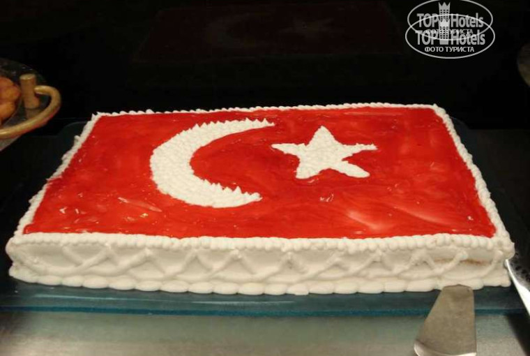 Еда ммм! По сравнению с другими отелями разнообразная. Из фруктов были: арбузы, яблоки, апельсины, сливы, виноград, дыни,персики, абрикосы (это просто объедение). Курица, мясо в разных видах, форель. Сладостей куча! Вообщем всё на уровне!