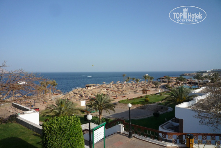 Прилетели в Шарм рано утром, в отеле были около 9 утра. Народа с нашего рейса в отель оказалось человек тридцать. От аэропорта до отеля минут 10-15 на автобусе. По прибытии в отель очень долго ждали заселение. Заполнили карточки, сдали на рецепшн и еще около двух часов сидели в холе. По нормам нас обещали заселить в 14.00, но все же около 11.00 нам выдали ключи от номера и браслеты. Обычно браслеты вешают сразу, но тут нет такого, поэтому на завтрак мы не попали…только на обед. Начитавшись негативных отзывов по поводу стандартных номеров, не стали испытывать свои нервы и сразу доплатили 96$ за номер с видом на море. Достался корпус 6 (№ 6101). Это оптимальное расположение на мой взгляд: середина между главным корпусом и морем, т.е. расстояние до моря и ресторанов приблизительно одинаковое. Вид из номера очень красивый, на остров Тиран. Правда, он утром находится в дымке, но после обеда отчетливо виден.