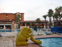А что касается отеля - всё как и ожидали. Прилетели мы около 7-ми утра. От аэропорта ехать почти 2 часа(под пиво незаметно, а дети успели выспаться). Зная о заселении после обеда, купальки брали с собой в ручную кладь, но на ресепшене через 10 минут, нам предложили номер "улучшенный" с доплатой(50 далларов), но с немедленным заселением - мы согласились. Номер не новый, холодильник еле холодил, но балкон выходил на море(т.е.главный бассейн, а море вдалеке) и обещенная двухярусная кровать тоже была. Входная дверь выходила на дорогу, было слышно ВСЁ, но нас это не напрягало - мы спим крепко. Кондишен работал исправно(залог 20 долларов за пульт), убирали каждый день(оставляли по 1 доллару, были и сердца, и лебеди из покрывал). Один раз проверила - дети лопали фисташки, скорлупа была по всему полу, что видела убрала, из-под кроватей не убирала принципиально - на следующий день проверила - чисто! В ванной - душевая кобина, фен, ТумБум, мыло, полотенца, шампуни брали свои. Сейф брали один на два номера(за 10 дней около 20 долларов). В ШКАФАХ ПОЛОК НЕТ!!! Но мы обошлись - не это главное!