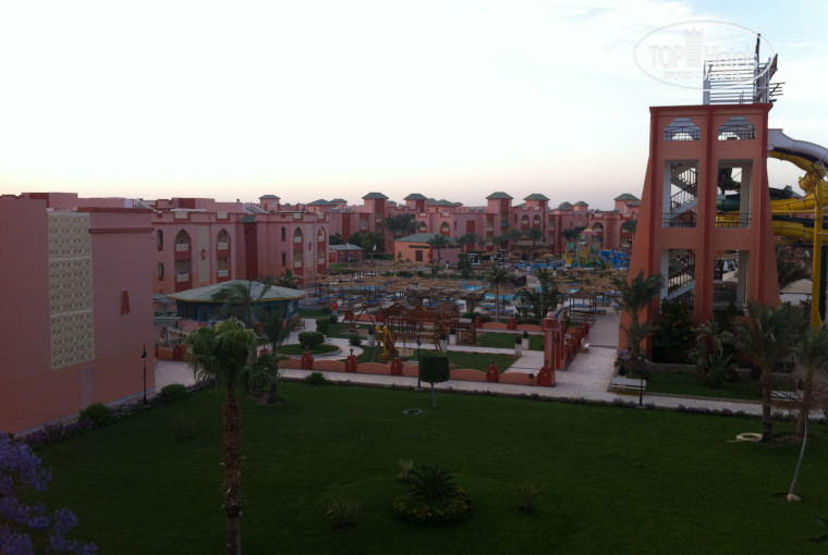 Территория отеля: с моей точки зрения - очень душевно. Без наворотов, но уютно и чистенько. Несколько бассейнов, один из них с подогревом. За 10 дней нашего пребывания, один раз был сильный ветер. Вода в бассейнах была значительно холоднее, чем до этого. Подогрев, увы, не спас. Катались на горках, работало 3 из 4, периодически включали 4-ю (синюю), но редко. Хотя в общем, вполне и трех хватало.