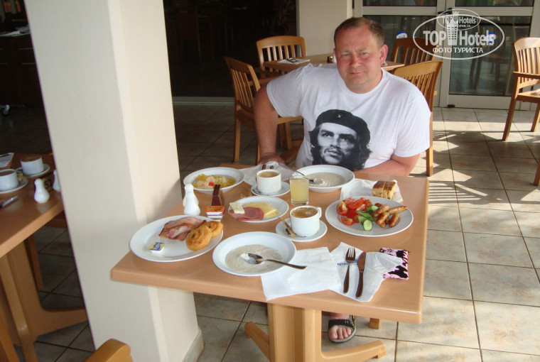 Были в этом отеле уже не первый раз и очень довольны. Вода действительно соленая как и на всем острове по причине отсутствия источников пресной воды на всем острове. Питание не очень разнообразное но проблем не было. Все было свежее и вкусное. Фрукты были яблоки апельсины арбузы и дыни. Мороженое выпечка от кексов до пироженых. Мясо и рыба овощи раздельно + салаты а так же фруктовые салаты йогурты и т.д. Персонал ручкоговорящий и очень вежливый. У нас проблем не возникало ни разу за все годы пребывания в этом отеле. Путевки в поселке брать дешевле. В отеле была живая музыки и различные шоу (фокусы. попугаи). Полотенца и постельное менялись постоянно (полотенца нам за 2 евро чаевых) меняли по 2-3 раза в день. постельное через день. В ресторане обслуживающий персонал очень приветлив и улыбчив. Им отдельное спасибо.Если решим опять поехать на кипр поедем в этот же отель. Люди приходили из 5* и говорили что наши 3* лучше так что очень рекомендую.