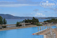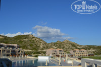 Отель совершенно новый, в 2011 году впервые принял туристов, соответственно 2012 г -только второй сезон работы. Отель выполнен в интересном сочетании стиля греческого традиционного городка или даже скорей деревушки и современного стиля хай-тек. Территория отеля со всех сторон окружена цепью не высоких гор. Территоррия огромная. Если лень добираться пешком до пляжа, аквапарка или какого -либо ресторана - персонал вас радушно подвезет на клаб-каре. Территория хорошо благоустроена, все красиво и ухожено. Но высоких деревьев, дающих много тени нет. Развлечений на территории отеля много: аквапарк, веревочный городок, две детских площадки, несколько бассейнов с барами и ресторанами. Был такой бар, в который можно было прямо приплыть из бассейна и тут же заказать напиток не выходя из воды. Очень много различных ресторанов и баров, везде хочется присесть и что нибудь заказать.