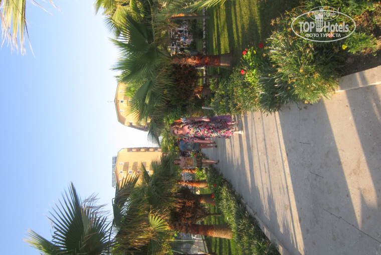 Отдыхала с детьми и мамой с 24.05.12 по 31.05.12 в этом отеле. Насчёт приезда,расселения не могу ничего сказать плохого (летали с Пегасом),всё очень быстро и хорошо,единственное очень далеко ехать от аэропорта (2 часа). Вылетели из Питера в 4-00,где-то в одиннадцать были в номере,хотя заселение с 14-00,но это потому что ещё отель был не переполнен.Ну,перед тем как лететь в этот отель с дочкой почитали много отзывов,90% правда.Теперь немного об отдыхе. Пляж чистый,песочный,а вот заход в море и в самом море ОЧЕНЬ крупная галька,берите КОРАЛЛИКИ обязательно (в отеле продают если что). Бассейны (один большой,один для малышей) чистые,горки включают по расписанию,но достаточно надолго.Лежаки у бассейна занимать надо очень рано(до 8-00),а на море всегда они есть. Территория у отеля очень маленькая,но ухоженная. Садовник работает каждый день,всё что-то делает(то поливает,то подстригает). Ну а теперь о еде. Скажу честно,что яйца и курицу есть не буду как минимум месяц. В принципе можно было выбрать чего поесть (очень много овощей,апельсины местные,ещё фрукты местные (что-то типа абрикосов и неспелого зелёного винограда),клубнику и арбуз мы покупали,вместо сыра -одна солёная брынза,очень вкусный белый хлеб. Во общем на четвёртый день я хотела домашней пищи. Спиртного полно,пей сколько хочешь,но до 23-30. А и ещё , в отеле 98% русские,1%казахи и 1%(извините)хачики.Рекомендую в отель этот ехать с детьми,территория мала,никуда не денутся,у бассейна дежурит спасатель. Ну,а молодёжи там делать вообще НЕЧЕГО! Скукатень,анимация вообще никакая,они там организовывали какие-то поездки на дискотеки(естественно платно),но не всегда набирали народ и поэтому откладывали.В целом отдохнули хорошо,но больше в этот отель не поеду.Всем приятного отдыха!