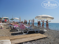 Пляж мелкая галька. сход в море отменный. лежаков хватало. Можно на пляж из ресторана выносить фрукты и напитки.