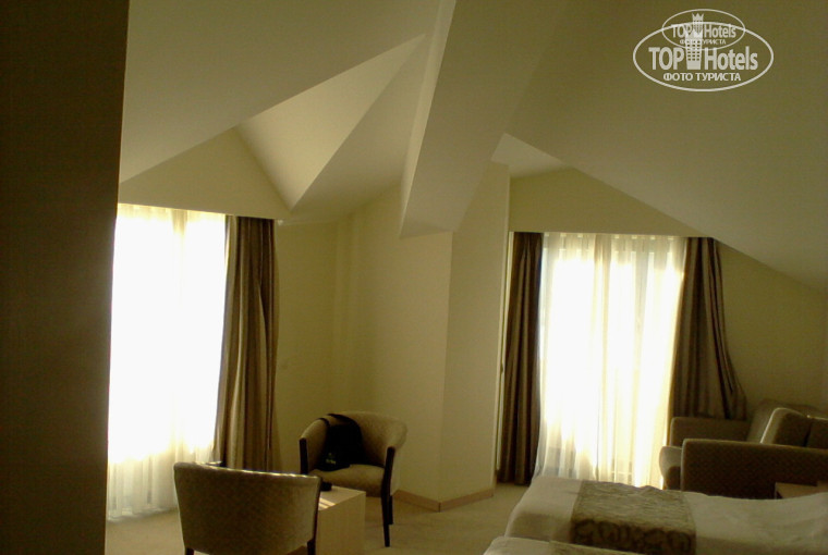 Прибыли в отель вечером 29.05.2012. и были заселены в течении 10 минут в номер на 4 этаже (426) с балконом с видом на море и вторым балкончиком с видом на соседний отель и горы. Жили в двоем с сыном (12 лет). Номер супер, все работало, две односпальные кровати+раскладное кресло, комната для нас двоих достаточная большая, даже удобно было бы и в троем. Личный кондиционер, 2-3 русских тв канала. За номер ничего не доплачивали. Подробнее номер описывать не буду (см.фото). Вид из окна шикарный. По питанию - отличное, много мяса, рыбы, салатов, выпечки, зелени, сладостей, фруктов - маловато показалось. Мест всегда хватало. Сервис отличный. Пляж галька, заход в воду без спец.обуви практически невозможен (отбили пальцы на ногах и порезали об камни). Есть свой пирс, со спуском в воду, но за шезлонги и лежаки надо платить (6 долларов в день). Около пирса плавают рыбки и черепахи. В отеле есть бани, комната отдыха, внутренний бассейн (снаружи также бассейн), теннисный стол, настольный футбол, дартс, снукер (за доп.плату). Беспроводной интернет бесплатно (скорость отличная), но он точно берет внизу где комната отдыха и бани, около рецепшена и в лобби баре, про остальные места не знаю, в номере не брал.