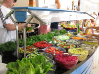 Пляж галька, матрасы, шезлонги бесплатно, есть мальчик, который очень оперативно перетащит куда надо. Море теплое, до изумления прозрачное. Есть пирс, лестница с пирса. Ходить без специальной обуви в море невозможно. В магазинчиках по близости полно всякой пляжной обуви. Чем хорош этот отель, так это близостью к центру. Природа в Кемере классная. Необычно, что вдоль тротуаров растут гранатовые деревья. С погодой повезло. Анимации не было. Рядом какие-то ночные клубы были, молодежь туда ходила. На экскурсии можно ходить и с уличных агенств. Их за порогом отеля, как парикмахерских и аптек у нас. Еда разнообразная, фруктов, овощей полно, арбузы, дыни, даже в начале июня, поначалу глаза разбегались, потом остепенились. Каждый вечер гриль на улице, мясо, рыба. На полдник на улице бабушка лепешки пекла, очень вкусные.
