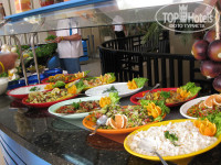 Побывали в Лотусе в начале июня 2009, путешествовали дочерью 19 лет. Дорога была долгая, перелет вымотал: ТезТур встретили отлично, большой автобус пока развез всех по отелям, мы были почти последние. Приехали кажется около 12, расчетный час размещения 14. Надо было подождать. Отель находится на первой лини. Походили по отелю, познакомились с территорией, в цокольном этаже расположились бани, бассейн с соленой водой. Потом мы туда больше почти не спускались. Сунули на рецепшен 20$, и нам дали номер с боковым видом на море. Потом узнали, что есть номера без окон, выходящие внутрь отеля. Номер чистый, все работало, за все время пожаловаться не на что. Мини-бар пустой. В душе каждый день пополнялись гель для душа и шампунь на двоих. Полотенца менялись регулярно, на пол не бросали. И с чаевыми и без убирались одинаково.