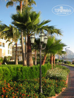 Территория не просто маленькая, а очень маленькая, но очень уютная. В Кемере отели притерты друг к другу впритык. Поэтому отсутствие территории возмещается мощеным тротуаром, соединенный маленькими мостиками, который идет вдоль всей набережной сквозь все прибрежные отели. Да и отель в самом городе расположен, так что вечерние прогулки по Кемеру заменят отсутствие внутренней территории.