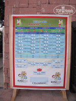 Питание, кто пишет суп жидковат, а это суп пюре, он такой и должен быть, мне очень понравился. Даже если пишут суп йогуртовый, это суп просто с добавлением кисломолочных продуктов (он совсем не кислый), для южных стран это нормально, а народ прочитав боится брать (наблюдал). Берите не пожалеете. Салаты вкусные и вроде всегда свежие. Мяса в нашем понимание почти нет. Бывает гуляш из говядины с овощами, но мясо жестковато. Курица на палочке, жарят на огне, порой перегоревшая. Рыба какая то безвкусная. Картошка, макароны спагетти, сыры,соусы, сладости, напитки, этого добра хватает. Фрукты: арбузы, дыни пока зеленые, но их тоже давали, яблоки из магазина, клубника только в сладостях. Голодными ни кто, не оставался, всегда есть выбор.
