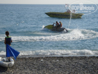 В последующие дни мы стали приходить на завтраки, обеды и ужины на 1-1,5 после начала. Конечно, еды уже мало и сладкого нет вообще, зато есть свободные столики!)) Кстати, утром выпить кофе не получится)) Чашек нет, а если удается отвоевать, через 5 минут официант будет силой ее вырывать)) И кофемашина... Если нажать "каппучино", то она сделает какао с молоком))) Если нажать "koffe milk", то она сделает тоже какао с молоком))) Пляж это отдельная история)) Лежаков не хватает. В первый день мы не знали, что делать, но потом какие-то ребята дали дельный совет "скинуть чьи-нибудь вещи и забрать шезлонг себе")) Так и поступили. Потом положили на них сумку и пакет и до конца отдыха эти лежаки никто не трогал. Ежедневно катались на водном мотоцикле, очень понравилось.