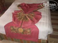 По порядку: Встретили, подвели к ресепшену, да, нам предложили(ненавязчиво) за 20$ номер с видом на бассейны, мы сказали,что посмотрим стандартный-так там и остались. Вид на дорогу и чуть в далеке море.На море,кстати, автобус(открытый-ехать с ветерком и весело)ходит каждые 15минут, пешком не пробовали ходить, но напрямую близко минут7-10. Так вот, так как впоследствии познакомились с другими гостями-номера все одинаковые, мебель и техника - тоже. А вид-нам,например было всё равно-мы отдыхать приехали, а не с балкона "пялиться".Выходили только повесить мокрые вещи и снять сухие. Питание отличное: утром куча выпечки (глаза разбегаются) стол, на котором нарезают сыр и колбасу(ветчина очень даже не плохая) Жарят при вас омлеты, по заказу(сами выбираете наполнители),рядом-глазунью, лежат вареные яйца. Всегда( на завтрак,обед и ужин)овощи и фрукты,напитки,чай,кофе) Сухие завтраки(хлопья.шарики),молоко. Куча всяких джемов,мёда, соусы.На обед:рис, картофель: запеченный, жареный,фри,молодой, с мясом, чипсы.Есть какие то супы(не буду врать-не пробовали, но народ ел за обе щеки. Мясо:говяядина,курица,утка.Рыба. Овощи запеченые,тушеные,жареные и т.д. и т.п. Поварам-респект. Напитки безалкагольные и алкагольные (устала перечислять)На ужин,сами понимаете-тоже всего с избытком. Я незнаю,конечно как питаются те,кому "все плохо" но мы даже ссего не перепробовали-все вкусно ( правда приготовленные овощи в Турции мне понравились больше) но всё остальное-СУПЕР. Возле бассейнов Гамбургеры,шаурма,хот-доги, короче-фастфуд.овощи, тортики,напитки,без и с алкаголем.Я, лично,(стыдно признаться)поправилась. Много,очень много, иностранцев. Наши,как всегда и везде, много пьют-видела,как брали водку стАканАми ("иховы"- тоже, но не в таких объёмах), Персонал приветлив,улыбчив, даже наверное через чур, все идущие навстречу спрашивают как дела? Везде чистота.