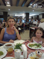 Ресторан.. Это песня.. Можно ходить полчаса и выбирать, чего тебе хочется. Никаких очередей, разве что на ужин лучше приходить или к началу, или ближе к концу, легче найти столик. Чего не было, так это: баранины, креветок, суши, клубники. Всегда свободно свежевыжатый апельсиновый сок утром. Лукум, курага, изюм, йогурты разные, компоты, варенья. Разнообразные мясные и рыбные блюда. Салаты можно смешивать как хочется: отдельно порезанные овощи, отдельно разные заправки - иогурт, оливковое масло, майонез и всякие соусы. Фрукты: виноград, персики, яблоки, абрикосы, мушмула, сливы, апельсины, бананы, грейпфруты, арбузы и дыни.. На завтрак также разные каши, на обед и ужин - два вида супа, вкуснейшие. Выпечка - на завтрак мы нассчитывали до 6 круглых пирогов, марципаны, ватружки, пирожки, булочки, ну и, конечно, турецкая пахлава нескольких видов..
