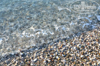 Море: В первый же день мы купили тапочки за 10$ рядом с отелем и вообще не знали проблем!!! Без них заходить в воду больновато всем. Я постоянно видела, как люди кривились от боли, но тапочки не покупали (странный у нас народ). Купались в основном русские, поляки, которых в отеле целая диаспора, обычно проводили весь день у бассейна с 7:00 до 22:00 )) Лежаков хватало всем. Мы с родителями ходили купаться утром до завтрака - с нами от силы плавало 2-3 человека. Море теплое, чистое, красота!!! после завтрака мы тоже ходили купаться, людей было побольше (особенно в том месте, где ещё достаёшь дно ногами), а дальше- тоже практически никого. В то время, как остальной народ шёл загорать , мы двигались к отелю на массаж (отдельная песня). После обеда мы устраивали себе отдых в номере и выходили купаться после 5 вечера перед ужином. Пару раз мы плавали после ужина. Море всегда замечательное. Из-за гальки - чистейшее, нет никаких медуз, водорослей, грязи, рыбок очень мало - не испугаешься во время купания, как в Египте. Даже во время небольшого шторма оно не пенилось. Замечательное море!!!