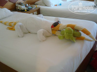 Номер большой и удобный, очень понравился, по предварительной договоренности нас поселили именно в такой номер, как мы просили, за символическую доплату 5 $ в сутки. Уборка так себе, пару раз недодали полотенец, после звонка на ресепшн все уладили в 5 минут. Дети радовались фигуркам из полотенец. С техником проблем не было, все работало исправно, насекомые не надоедали) Мини-бар пополнялся ежедневно до 17ч, только соки давали почти всегда из гуавы (на любителя) и очень сладкие.