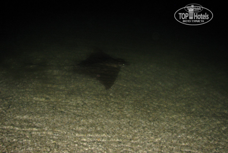 Территория зеленая,вдоль берега плиточная дорожка, когда стемнело, видели скатов, черепах на мелководье. Можно погулять, все освещается.