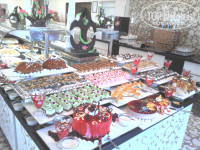 5.Питание.Фрукты:9-10 наименований 3 раза в день,еще в дневное время в баре на пляже во время обеда,перекус овощами или фруктами во время полдника.Отличный полдник о горячими пончиками,чудными колечками с кунжутом и сыром.Очень огромное разнообразие печенья,булочек,бисквитов.Круглосуточно напитки,пиво,ликеры,коктейли,очень приличного качества,вкусный айран,есть для детей пакетированные напитки.Турецкий кофе в лобби и в кондитерской-очень вкусный.Есть в кофе машинах по всей территории отеля.Есть горячий шоколад,какао,экспрессо,и тд.Вкуснейшее мороженное 6 или 7 сортов с 11 до 17 в водном баре.Ходили только в общий ресторан.Питание очень разнообразное.В процессе нашего пребывания появилось диетическое меню.Всегда мясо,курица,индейка,рыба.И всегда 2-3 вида каждого перечисленного.Были мидии,креветки,кальмары,суши,лосось запеченный в соли Ууууу.Вкусные сыры,5-6 разновидностей оливок.В общем всего не перечислишь.Шикарный сладкий стол.А национальные пироги-гюзлеме...Женщина целый день их печет возле бассейна.Еще раз хочется сказать огромное спасибо официантам.Замечательны были турецкие ночи.В эти вечера были потрясающие ужины,музыка,нарядный обслуживающий персонал.