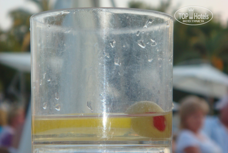 Спиртное: как везде в пятерках. Но качество посуды - мутный пластик, а порция, которую наливают заслуживает отдельного комментария. В 200 граммовый стакан наливали мартини на один палец, оливку напиток не закрывал. Народ сразу набирал по 5-6 порций текилы или коньяка и сливал в один стаканчик - получалась нормальная дозировка, которую наливают в других отелях. Впервые мой супруг пожалел, что не затарился в дьюти фри. Исключение лобби-бар, там все отлично: и посуда, и порции, и сервис.