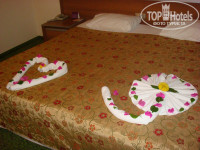 Расселение: По прибытию в отель нам, как положено, предложили заполнить карточки гостя и выдали ключи от номера. В путевке у нас был стандартный номер с видом на сад, мы предположили, что номер который указан в карточке гостя находится в 1-м или 2-м корпусе, спросили на ресепшен куда нам идти, получили неопределенный взмах рукой, ничего не поняли и подошли с вопросом к гиду. Гид нам пояснил, что нам выдали ключ от номера в бунгало(!) - пятый этаж). Мы долго бегали по жаре в поисках пятиэтажного бунгало, не нашли, конечно, странно, что гиды не знают, что все бунгало в отеле двухэтажные. В результате мы обменяли номер в бунгало на стандартный номер во 2-м корпусе, но с балконом. Такая вот у нас была причуда - обязательно балкон. Но сама встреча на ресепшн разочаровала.