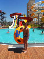 Питание: Кушали отлично, еда в основном турецко-одинаковая, мяско (курица, говядина), рыба (лосось, тунец), всякие майонезные смешанные салатики, зелень, мороженое бесплатно. Супчики пюреобразные, вкусные. НО, с супчиком со мной произошла одна из ряда вон выходящая история. Налила я себе половничек, стала кушать, и обнаружила в нем самый настоящий пакетик...такой сморщенный, вареный...была повергнута в шок , могу представить как они там их варят.. жаловаться не стала..так как не конфликтна по натуре.... Из фруктов один раз всего лишь была клубника, а так арбузы с дынями обязательно, никтарины шикарные, черешня отборная, яблочки, груши, сливы, виноградик и т.д. Порадовал меня мед в сотах...нигде более не встречала в турецких отелях подобного. Сладостей валом...десертики меня радовали именно которые в бокалах..торты, много вкусняшек разных. Алкоголь - под сомнением. Пиво естественно разбавленное, вино местное я разбавляла яблочным соком..тогда можно было пить...джин тон - так себе, виски платно, коньяк местный вонючий, ну и химические соки как обычно, пакетные соки вкусные. Есть магазин, где продается ну все, что душе угодно, как в обычном городском. Цены - "три дороги", а именно очень все дорого. Сын захотел чипсов, всяких шоколадок, молоко маленький пакетик, макароны типа ролтон, заплатила я за все это около тысячи рублей....что просто ужас! Живущие постоянно на виллах отовариваются там...наверно по другой цене.....