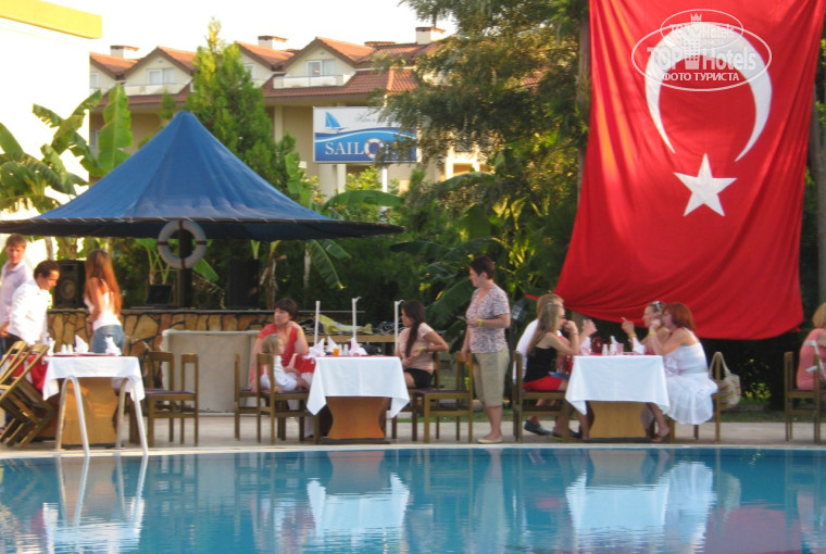Отдыхали с семьёй с 13 по 21 июля 2012г. Приехали ночью, в 5 утра, вселили "ЗА ДОПОЛНИТЕЛЬНУЮ ПЛАТУ" 30 дол.... Отель не плохой, доброжелательный персонал. Номера стандартные, с кондиционерами в номере, телевизором.Убирают чисто. Мини бар отсутствует, интернет отсутствует, территория ухожена, красиво, но маленькая очень. Хамам не понравился, массаж не профессиональный, не тратьте деньги, лучше купить за 1 доллар мыло и варежку- скраб и самим всю процедуру с пилингом сделать....Еда вполне соответствует трем звездам отеля, голодными не уходили. Анимация никакая!!!!! Аниматор занята была своим ребенком маленьким....Скучновато там. Хороший бассейн, чистый очень. Пляжные полотенца выдаются, но лучше и свое с собой привезти или купить на месте.Пляж не далеко от отеля, идти минут 5, пляж галька без специальной обуви не зайти, пляж плохо убирают, грязный.Для туристов обязательно нужно брать с собой пантенол, лекарства от аллергии!!! не только в таблетках но и уколах, антигистаминные препараты!!!У многих в отеле появилась аллергия, не известно на что. Вызвать доктора стоит 30 дол.... лечение отдельное.....Всякие сувениры и прочую ерунду лучше покупать рядом с отелем, много лавочек всяких, в городе намного дороже. Гиды предлагают поездки, цены очень завышены!!!!! Возят по дорогим лавочкам, с которых получают свой процент!!!Рядом туризм предлагают намного дешевле и так же со страховкой!!!!!За экскурсию, входящую в стоимость путевки( шопинг) гиды берут 15 дол. ....Летали с "Пегасом туристик", с самолетом проблем не было, вовремя и вылет и прилет, но организация отдыха и за то что включено в путевку, еще дополнительно платишь...никакой ответственности не несут за туристов... страховка мед.. одно название... Уважаемые желающие поехать в этот отель, информация об отеле не соответствует действительности немного!Но в целом стоит таких денег, на полные три звезды, не плохо отдохнёте!!!