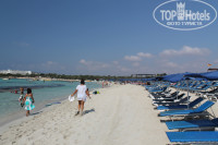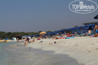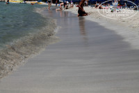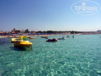 3)Море и пляж:- Песчаный со всеми удобствами, лежаки и зонтики за отдельную плату – 2.5 евро за штуку. Пляж опять таки нам показался тоже в некотором роде семейный т.е. как правило все были с детьми, что в свою очередь тоже не напрягало, было просторно и всем хватало места. При входе на пляж уходили чуть левее, там никогда небывало водорослей, которые если и появлялись – то их сносило в право, там где прокат водного транспорта (водоросли были – 3 раза за 14 дней) и их до обеда обязательно убирали сотрудники пляжа. Они же с утра проходят специальной машиной по песку и убирают мусор. На пляже есть прокат скутеров (35 евро за 15 мин.), катеров, катамаранов (12 евро за 30 мин и 20 евро за час), слетать на парашюте (55 евро за двоих 10 мин.) и т.д., написал цены только те что сами брали и знаем. Когда летели на парашюте и пролетали мимо пляжа нисси бич, то ужаснулись, возле почти всей береговой линии цвела вода, причем не как у нас это метровый слой на дне водорослей, а метров 5-7 зеленой тины (по крайней мере нам так показалось с высоты). После увиденного мы полюбили наш пляж еще больше. Люди пришедшие с пляжа нисси бич (в основном семейные) жаловались на то что там безбашанная молодежь – кричат и бегают как не нормальные. Это с одной стороны и понятно, он ближе к городу, там район помолодежнее, наш район он все таки более семейный. Вода теплая и прозрачная, песок приятный. До глубины идти метров 30 не меньше. Для нас это было замечательно, т.к. дети в нарукавниках заходили далеко в глубь, и за них не было страшно.