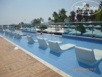 Территория не большая,но красивая.За главным бассейном сразу идут лежаки и море.Дорога в море сначала песочек потом идет галька,но ничего страшного это полезно для стоп ног.Лежаки на берегу моря есть свободные всегда,вот возле бассейна немного сложнее,люди их занимали с 6утра.Но мы никогда не старались лежать возле бассейна,в бассейн можно сходить и в своем городе,мы всегда ходили на море,мы и приехали отдыхать на море,а не лежать возле бассейна.