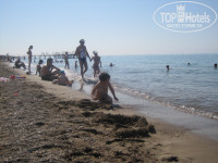 Пляж: песчаный, большой, места хватало всем. Лежаков нам не хватило только один раз, но мы быстро заняли освободившиеся. Море теплое, по утрам спокойное и прозрачное, к вечеру появляются волны на которых очень здорово качаться и прыгать, море становится грязноватым. Вход в море пологий, но сильно не "разбежишься", т.к. глубина быстро увеличивается. На пляже с утра и часов до 4-5 вечера готовят лепешки с начинкой из картофеля/фарша/зелени. Из напитков только юппи и вода в кулере (которую, кстати, местные не пьют. Сама лично видела как водитель привозил поварихе воду в бутылке).