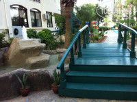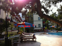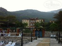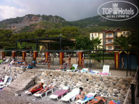 Территория отеля небольшая, но очень много зелени и все очень ухожено. Бар недалеко от пляжа. На пляже, и на понтоне всегда было много свободных лежаков. Бассейн один я в нем правда не разу не купалась, лежаков также много свободных. Детский бассейн также один.
