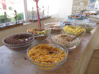 На завтрак 7.30-09.45 – то же, что и в прошлом году, но практически пропало горячее - подруга моя очень тосковала по картофелю (ни разу не было). Омлет - не всегда. Яйца варёные - постоянно. Мои засыпки были на месте. Однажды была вкуснющая манная каша (вместо омлета)))) Я слопала две тарелки, а Мария тосковала над бутером с колбасой. Завтраки - для любителей сладкого, молочного - не пропадёте. Мясоеды отдыхают.