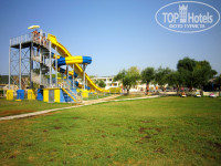 Сразу напишу по существу! Отель очень большой и красивый с приятной зеленой территорией газоны аккуратно выстрежены по ним можно свободно ходить и лежать на них, на каждом шагу вдоль дорожек есть баки для мусора и урны для акурков, на территории отеля 5 бассейнов, один из них детский, дочке 6 лет вода там ей была по пояс, грибочек с небольшими горками и фигурками дельфинов, этот бассейн стоит прямо на берегу моря за оградкой. Все время лежали у него и купаться ходили на море!) Есть большой центральный бассейн с большой горкой-аквапарк (3 евро за день стоит катание с горок, можно купить браслет 10 евро на неделю) остальные бассейны для обычного плавания.