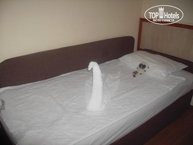 Отдыхали в августе вдвоем с ребенком.Жили в бунгало в номере клаб сингл,номер маленький,но нам вдвоем с ребенком хватало.Все есть-2 полноценные кровати,шкаф,сейф,плазма с каналами -карусель,ru-тв,русские новости(номер после ремонта,все чистенькое),мини бар с кока-колой,фантой,минералкой и водой без газа,кондишен старенький но работал исправно и довольно тихо. Теперь о питании за которое я поставила 4-для взрослых 5!,а для детей 4(островато).Фруктов было много-яблоки,груши,киви,виноград,арбузы,дыни,персики,сливы,бананы.Мяса очень много и в разных видах-гриль, запеченое,тушеное(баранина,телятина,индейка,курица)Морепродукты(кальмары,креветки,мидии),много овощей и изобилие сыров,маслин и сладостей,рыба тоже присутствовала. Убирались у нас в номере хорошо,полотенца меняли каждый день,белье через день(один раз скрутили лебедя на детской кровати),по моей просьбе убирались всегда в первой половине дня,хотя все зависит от горничной,у наших знакомых убирались очень плохо(хотя они также как и мы оставляли по 1$) Территория отличная-большая, зеленая,ухоженная,много цветов,пальм,фруктовых деревьев,ну в общем есть где погулять и что посмотреть. По поводу инфекций:нас слава богу миновала т.к.мы старались как можно меньше ходить в басссейны(вода в них горячая,детей много-все может быть)Мы старались много времени проводить на море. Анимация так себе ничего особенного. Отдыхали от Санрайз тура-все хорошо:трансфер,гиды и т.д. Летели аэрофлотом,тоже очень довольны,все без задержек(в самолете давали детям прикольные сувениры.чтобы в дороге было не скучно). Тем кто собирается в этот отель приятного отдыха,у вас все будет хорошо!!!!!