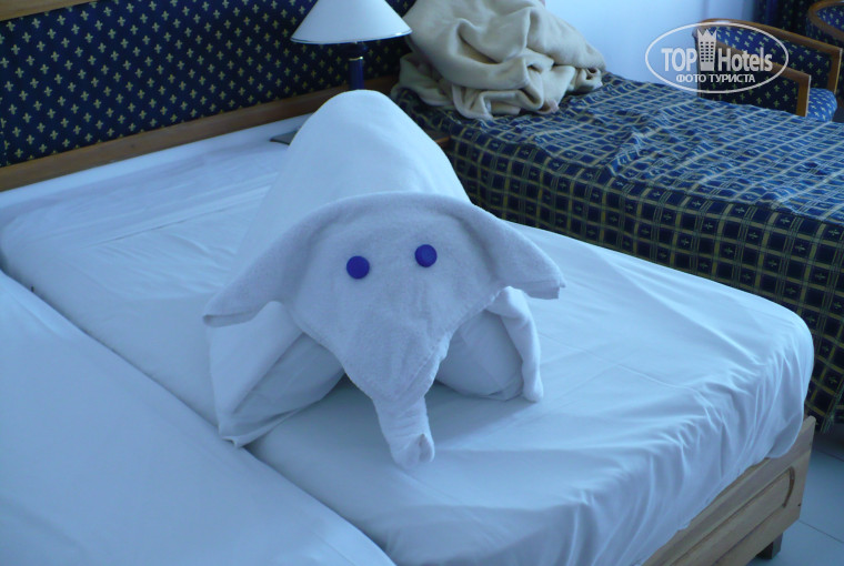 Нас поселили в 3-й корпус на втором этаже, номер с балконом вид на бассейны. Что касается шума, нужно просто закрыть балконную дверь. В номере все аккуратно, чисто, что касается мебели отель не вчера построен, но ничего не разваливается, не отваливается, все работает, открывается, множество шкафчиков, полочек, все функционально. Уборка в номерах отдельный вопрос. Надеюсь, что администрация отеля поощрит очаровательного уборщика Хассана (Hassan). Ежедневно все поменяно, протерто, помыто и даже если Вы еще спите или просто сидите в номере уберут когда Вам будет удобно. А также на протяжении всего отдыха у нас на кровати были лебеди, слоники (!!!!!), кораблики, рыбки, сердечки и даже цветы в вазочке. Я думаю 1 доллар в день никого не утянет, а вот радость от увиденного бесценна!!! Воду приносят ежедневно в любых (в рамках разумного) количествах. На момент отъезда у нас осталось 6 бутылок, а я водохлеб которых еще поискать надо.