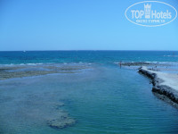 В отеле есть лагуна, отделенная от открытого моря сетками. Достаточно большие отмели, где могут плескаться детки и остальная часть где "плескаются" взрослые без опаски наступить на местную морскую животинку. За сетками можно поплавать с маской. Множество всяких рыбок различной величины и расцветки. Видели даже скатов. Некоторые встречали морскую черепаху. В открытое море лучше одевать тапочки, встречаются острые кораллы и очень много морских ежей. Шезлонги у моря всегда есть свободные. Бар с напитками соки, водичка, другого не употребляли.