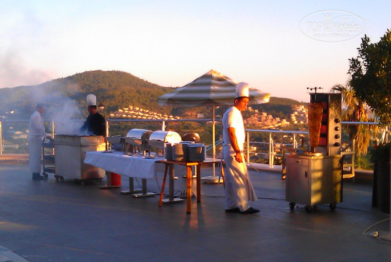 Отель поразил меня своими масштабами красотой и ухоженостью каждого уголка отеля. Трава везде подстригается, поливается убирается. Короче говоря МОЛОДЦЫ! Единственное что нас не устроило что прибыв в 7 утра в отель нас поселили в неухоженный номер. А по ихнем внутренним правилам номера убираются с 14:00. Но все что с нас окружало и сервис, большие чистые басейны, аквапарк, обслуживающий персонал полностью перекрыли неудобства при поселении в номер. Кушать дают на убой, мясо было разное и говядина, курятина, баранина кроме свенины... Мы еще попали на "Гала Ужин". Вечером возле басейнов повыносили столы и на сцене играла музыка аниматоры работали. Короче умнички!!! ВСем рекомендую этот отель!!! Нам в агенстве даже не предлагали его из-за того что далеко до моря. Разслабтесь, каждый час автобус с кондиционерами туда и обратно вас завезут до пляжа. Ездили с семей 3+1 и жили на вилле-апарт. Вид с окна.... это что-то!!! Можна глядеть целую ночь и не наглядется...