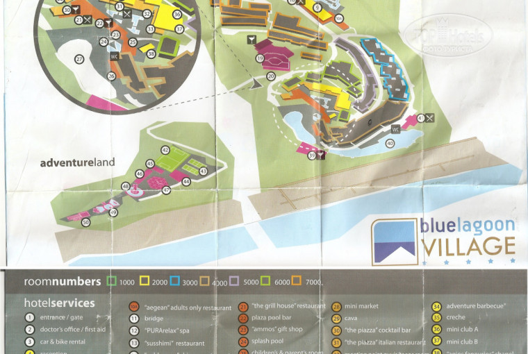 Номера отличные, выглядят современно, мебель и техника новые. К номерам претензий нет. У нас был оплачен номер с видом на море (Sea View) -он нам и достался. При этом очень повезло, что номер был в четвертом корпусе (прямо возле главного бассейна, рядом с морем). Еще нормальные корпуса - пятый и шестой (номера 5xxx и 6xxx). Самые отстойные - первый, второй, и седьмой. От них ОЧЕНЬ далеко тащиться и до моря, и до ресторана... Да, прикладываю в фотках важную вещь - КАРТУ ОТЕЛЯ. Можете сами посмотреть, что где расположено.