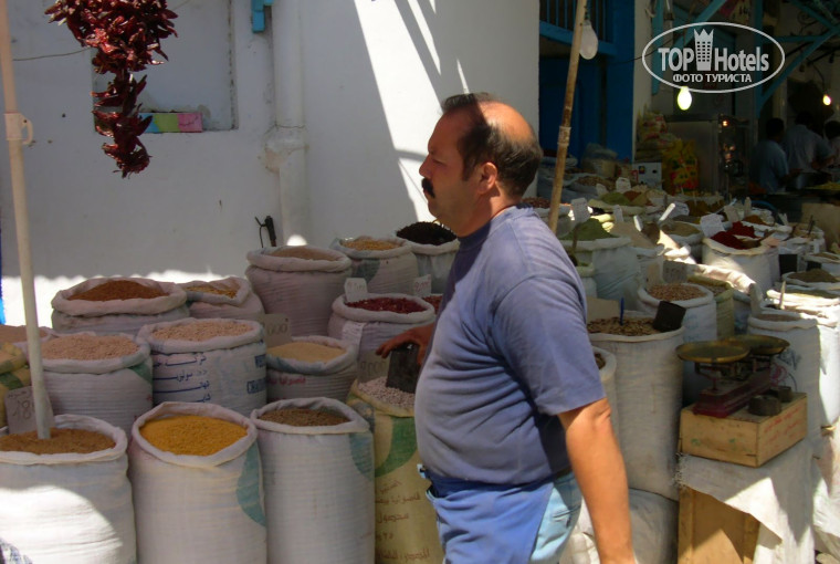 На пляже дивная кафешка, которая работает и ночью. Ну а гостям «ол инклюзив» вообще крысота. Питье и лежаки бесплатно. К слову сказать, стаканчик «кока-колы» стоит 2 динара. Это 1,5 доллара. Не хило! Теннисные корты, площадка для гольфа, бильярд, ночная дискотека, пицерия, анимация, спортзал, массажный кабинет, парикмахерская, короче все, что душе угодно. С дамами, не решающимися посещать спортзал, в бассейне в удовольствием занимается аквааэробикой молоденький метис (неизвестной породы). А вообще, выйдя за территорию, можно погонять на квадроциклах по оливковой роще и пустырю с кактусами, и покататься верхом. Коняшки местные очень отличаются от «наших». Щуплые какие-то. Оно и понятно. Поди-ка, по такой жаре, попробуй сохранить комплекцию…