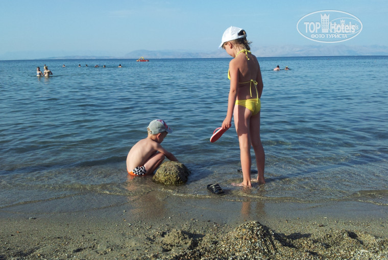 Пляж. Есть водоросли и ежики (вторые без первого не встречались), но есть они не везде. Мы ходили с детьми по пляжу налево. Сразу как заканчивалась территория отеля (за небольшой насыпью камней), начинался песчаный заход. Детям в самый раз. С маской хорошо видно живность в водорослях)