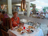 В БОЛГАРИИ была впервые...Отель Градина внешне производит хорошее впечатление...Кругом все чисто и ухоженно,здание современное,отдать нужно должное спасателю,который ухаживает за бассейном-очень чисто,вода меняется постоянно,кругом цветы -несмотря на то,что уже осень почти...Когда мы зашли на территорию близлижащего отеля Преслав-мы были в шоке-через него ходили по дорожке к морю-там была грязь,мусор и запустение... Вот тогда оценили нашу Градину...В номере все понравилось-есть мини холодильник,кондиционер,телевизор,на балконе сушилка...Единственный недостаток,что из душа вода течет прямо на пол-нет поддона...Меня это конечно не очень напрягало,так как 10 дней -это можно как-то пережить,но семьи с детьми жаловались,что детей мыть неудобно,да и тазика даже никакого нет,чтобы постирать одежду или помыть маленького ребенка...Многие жаловались на питание...Но я осталась довольна...У меня были только завтраки-большое разнообразие и выбор...Брала утром кашу гречневую с сосисками,творог очень вкусный поливала шоколадом и черносливом... Были там булочки,несколько видов колбасы,сыра,яиц-что еще нужно ? Как будто дома у вас 20 блюд на завтрак...Обедала обычно в ресторане Экзотика-он как раз по пути к морю когда идешь через отель Преслав...Брала там в обед супчик рыбный,так как после моря и жары особенно есть не хочется... Вечером шли гулять с подругой по так называемому бродвею-там море ресторанов и все зазывают,ходили туда ,где музыка...Но если хотели сьэкономить -покупали кусок питцы за 2,5 лева-к ней бесплатно давали стакан пива или колы по выбору...В ообще цены в ресторанах не очень большие.. Можно на двоих отдать 20 лев вместе с вином...Фрукты очень дорогие -так как Золотые пески-это как Сочи...Если поехать в Варну -там на рынке все в 3 раза дешевле...Курорт больше подходит для отдыха молодежи-масса развлечений и клубов....Семейным лучше ехать в менее престижные места-там тише и дешевле... Очень довольна осталась отдыхом,море прекрасное... Отель соответствует своей цене...