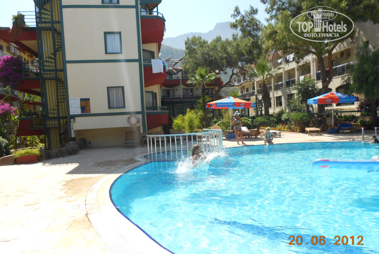Насчёт питания: всё было очень вкусно приготовлено, нам понравилось. Вообще обслуживание отеля было не плохим, с нами все здоровались, мило улыбались. Но вот БАРМЕН там ужасный!!!!!!!!!!!наливал так, как будто делал нам одолжение, очень не приятно!!!!! Пить и есть можно до 11 бесплатно, так вот, уже часов с 10-ти вечера, когда начиналась анимация, к бармену лучше не подходить, он 2 бокала в одни руки не давал, а если и просишь у него для себя и друзей. он не наливал, мол пусть сами идут. Очень не приятно, как бармен высматривал, сколько человек сидит за столиком, кто что пьёт, это очень унизительно. Отель был бы на высоте, он очень красивый, зелёный, чистый, море-супер-горячее, но бармен-это огромный косяк отеля. Очень приятным было для нас, когда в отель приехали отдыхать турки, мы с ними общались, хоть и на разных языках, они очень приветливые и милые люди!