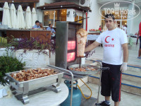 Питание: всегда чего-то не хватает в ассортименте. Если есть хорошая варёная картошка и грибы, то нет мяса, одна курица. Если есть мясо, то гарнир один рис. Рыбы не было. Одним словом типичная турецкая соево-салатная пища и пропитанные мёдом приторные сладости. Хочется научить повара готовить окрошку, продукты для этого есть на раздаче. Куда девают бульон от приготовления курицы? Яйцо и укроп у них же есть. Меню требует проработки. Завтрак правда вполне европейский: молочная рисовая каша, молоко, яйцо, сыры, булочки, чай, кофе. Пиво качественное Efes наливали сами и сколько хочешь, оно перебивает вкус острых салатов. Вино белое и красное – не очень вкусное, но так-же сколько сможешь. В лобби-баре раки, водка, джин, коктейли, пиво, фанта, спрайт, содовая и вода из кулера без ограничений. Не говорят, что тебе достаточно, как практикуется в других отелях.